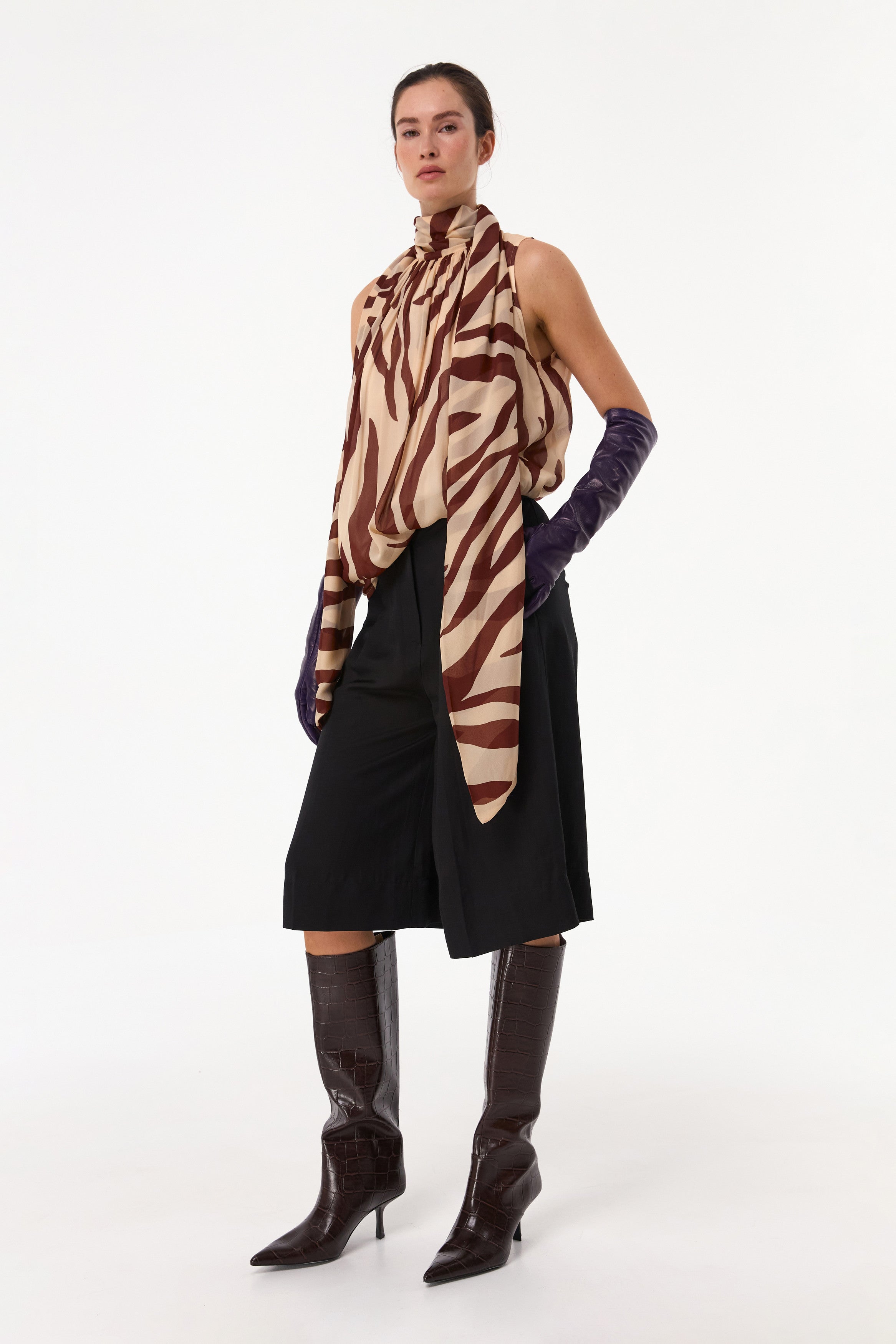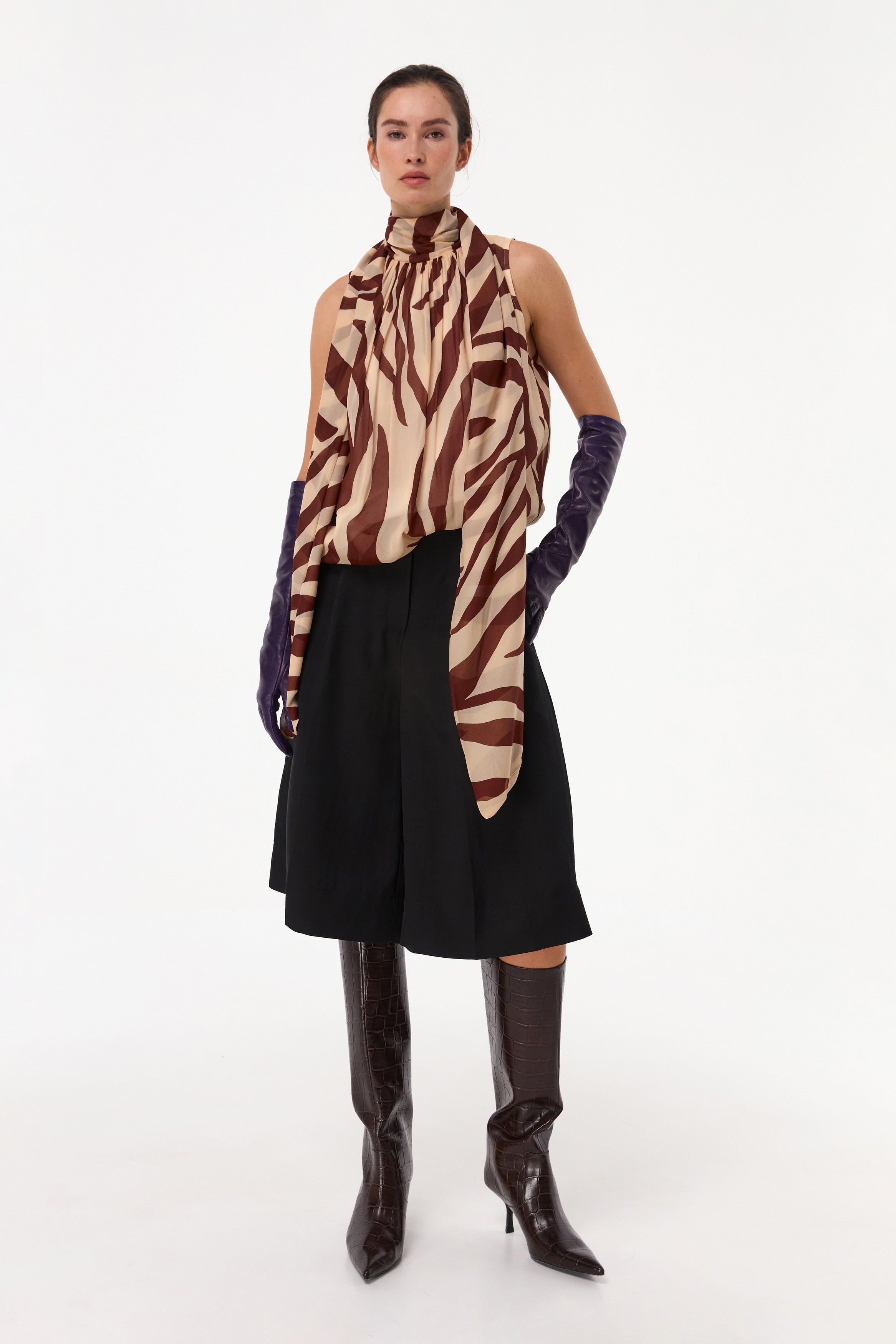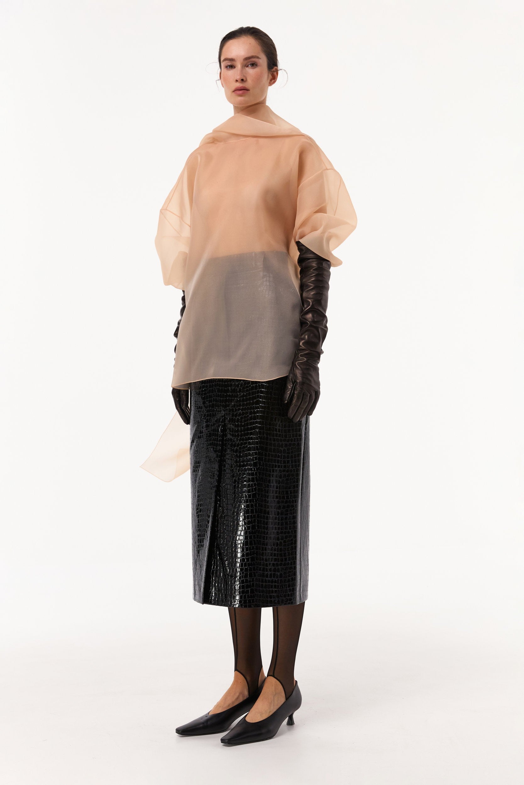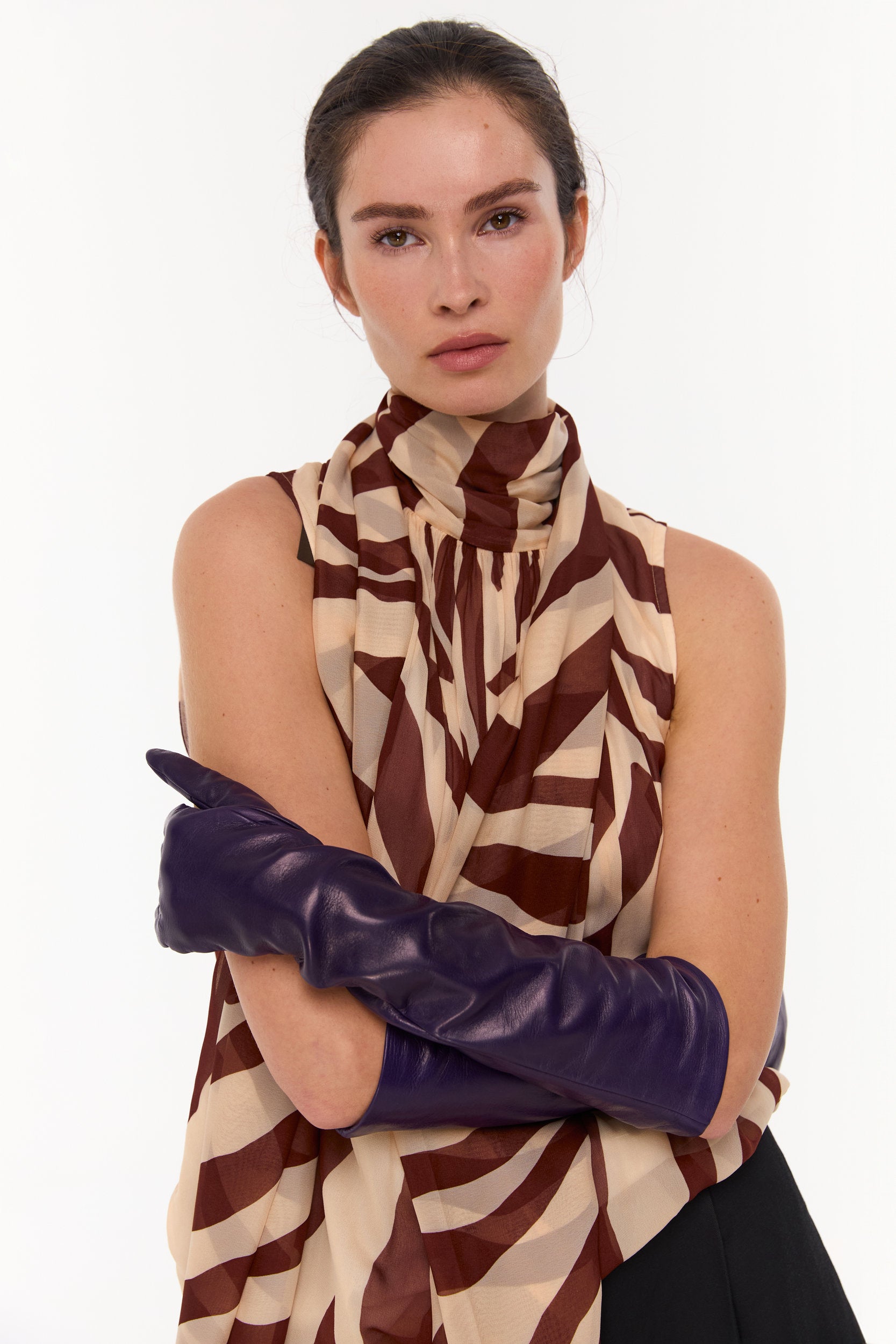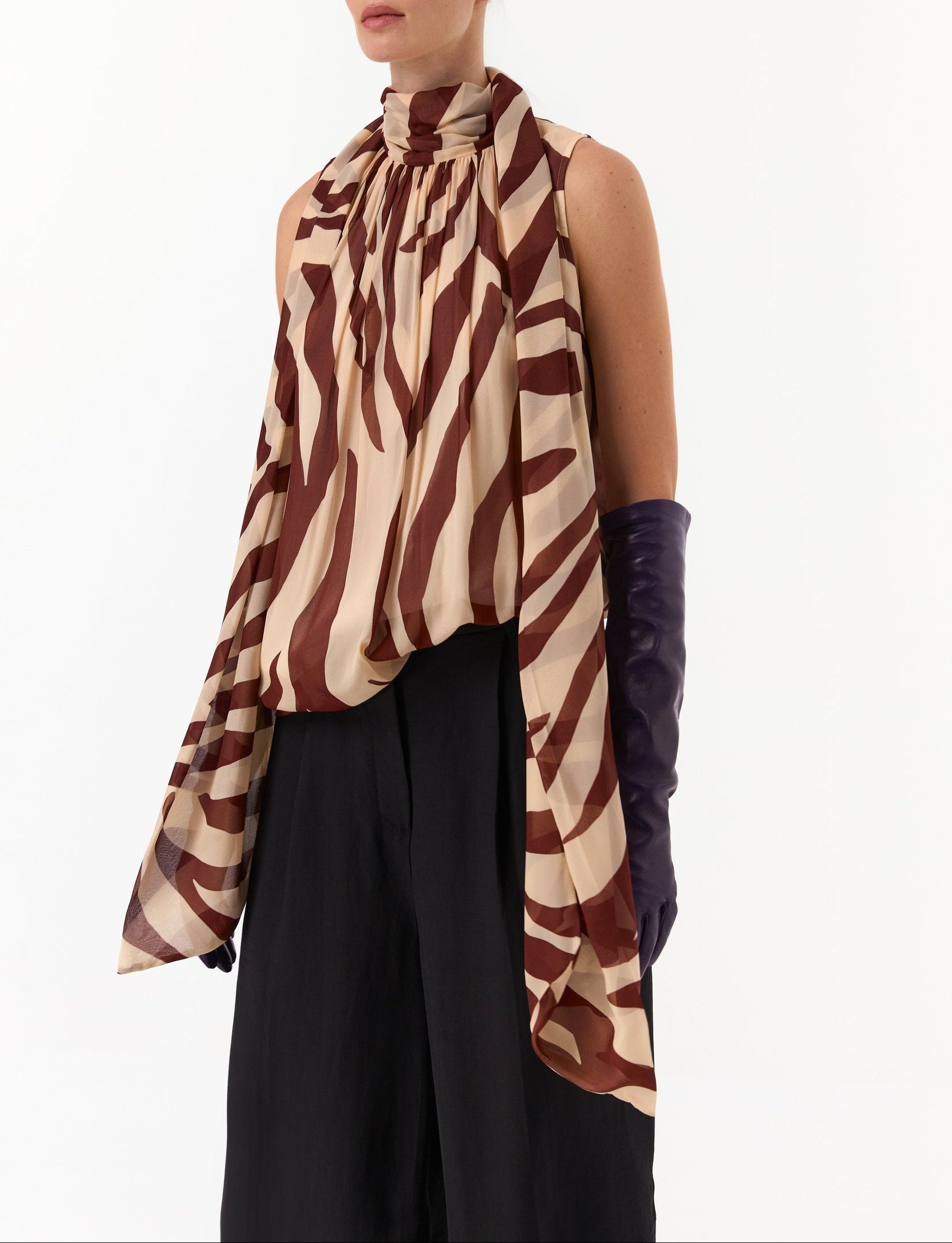 Ambitna Hooded Chiffon Blouse in Burgundy