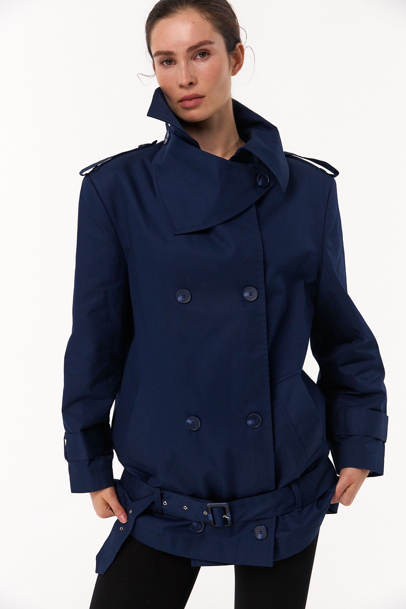 Ambitna Deep Blue Low-Waist Trench Coat