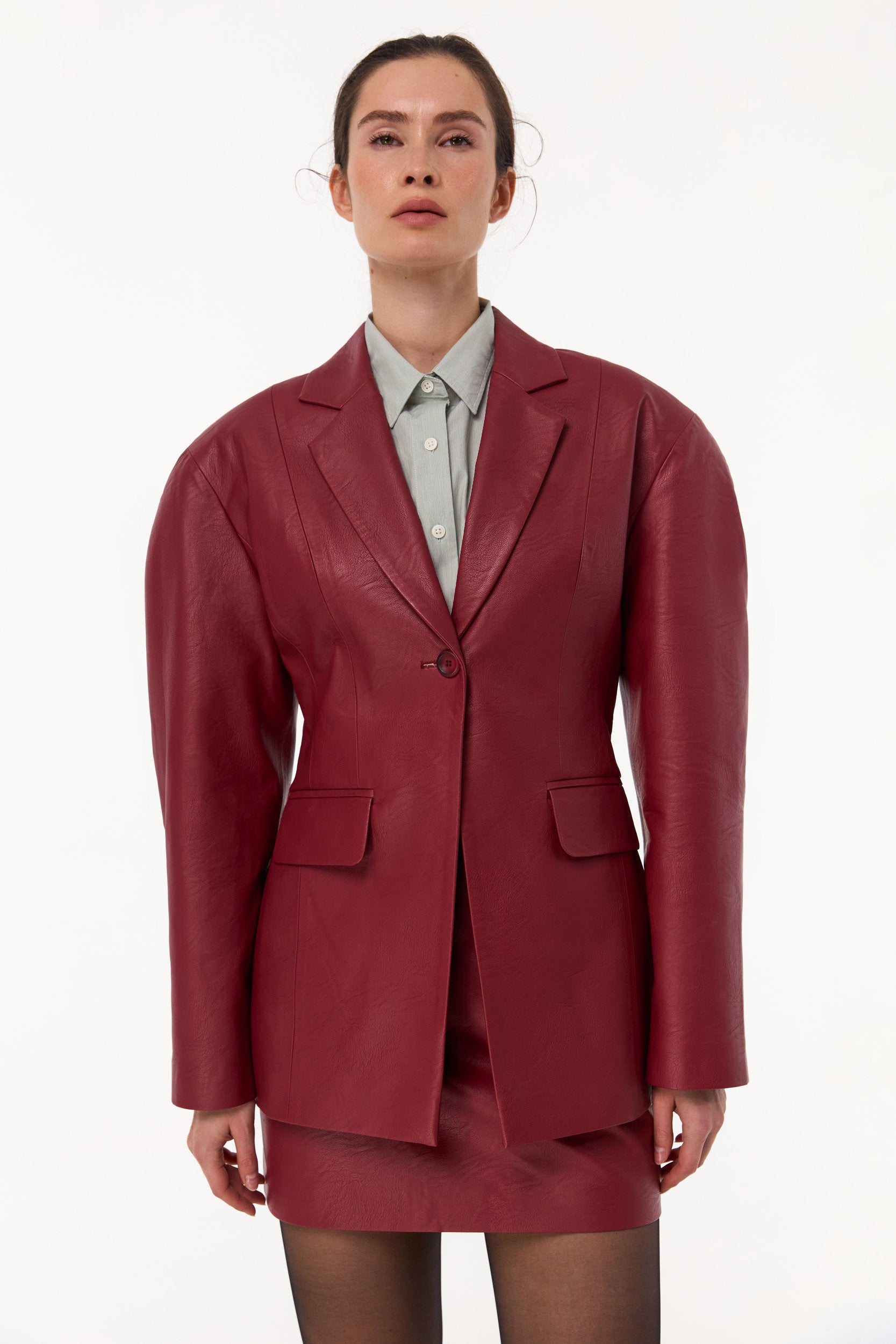 • Single-breasted front with notched lapels