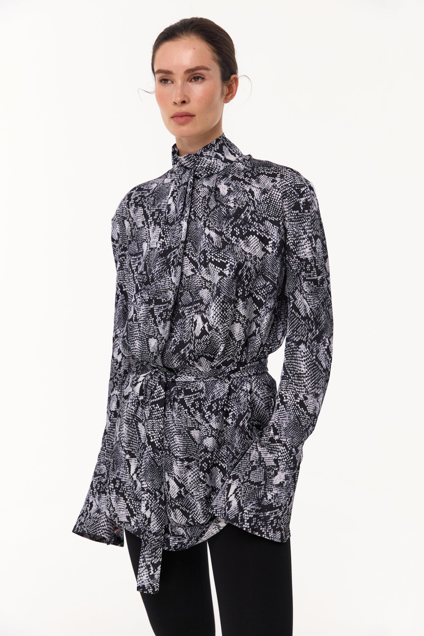 Statement snake-print tunic with playful elegance and a soft, effortless fit that elevates every outfit.